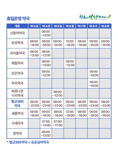 ⚠️ 단, 의료기관·약국 운영은 상황에 따라 변경될 수 있으므로 반드시 전화 문의 후 방문해 주세요!