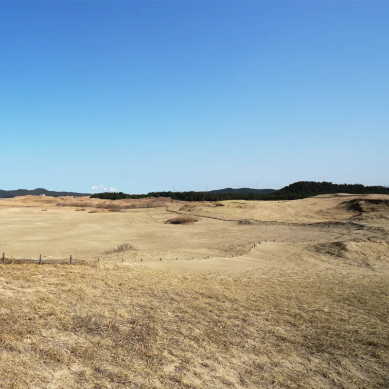 신두리 해안사구의 탐방코스를 따라 걷다 보면 겨울 특유의 분위기가 더해져 정말 사막에 온 듯한 풍경이 펼쳐지는데, 이런 황무지 같은 곳에서 다양한 동·식물들이 보금자리로 살아간답니다. 살랑살랑 봄바람이 불어오면 모래 사이사이로 진한 분홍빛 해당화가 고개를 내밀고 갯메꽃을 비롯해 도마뱀, 표범장지뱀, 고라니 등 다양한 생태계가 해안사구에서 살아가고 있답니다.