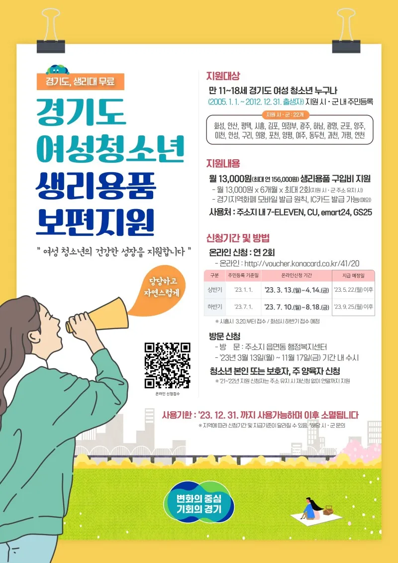 경기도 여성 청소년이라면 누구나! 『경기도 여성청소년 생리용품 보편지원 사업』