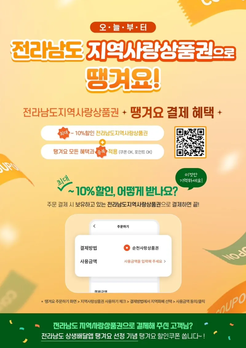 ⭐️ 상생배달앱 땡겨요 : 지역사랑상품권 할인 이벤트