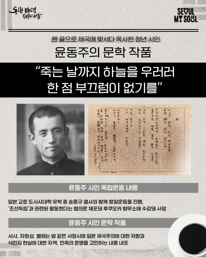 펜 끝으로 제국에 맞서다 옥사한 청년 시인 윤동주의 문학 작품 |
