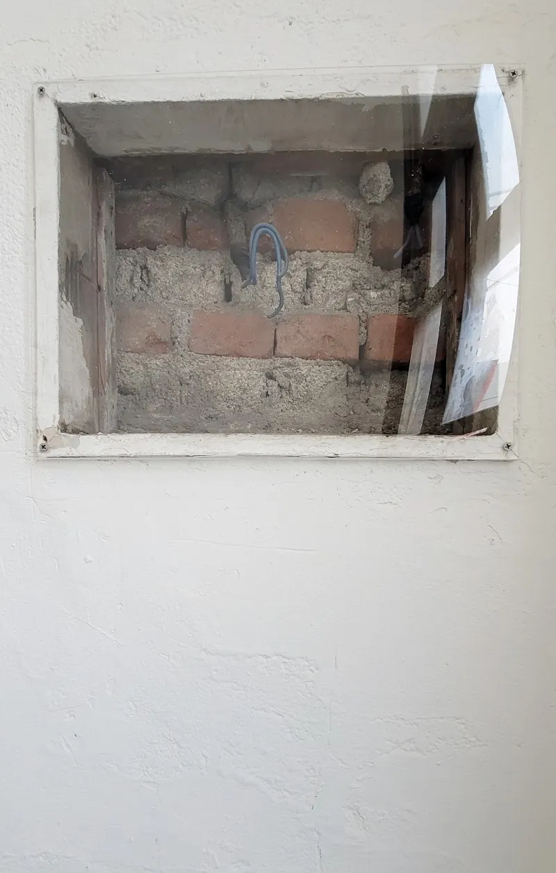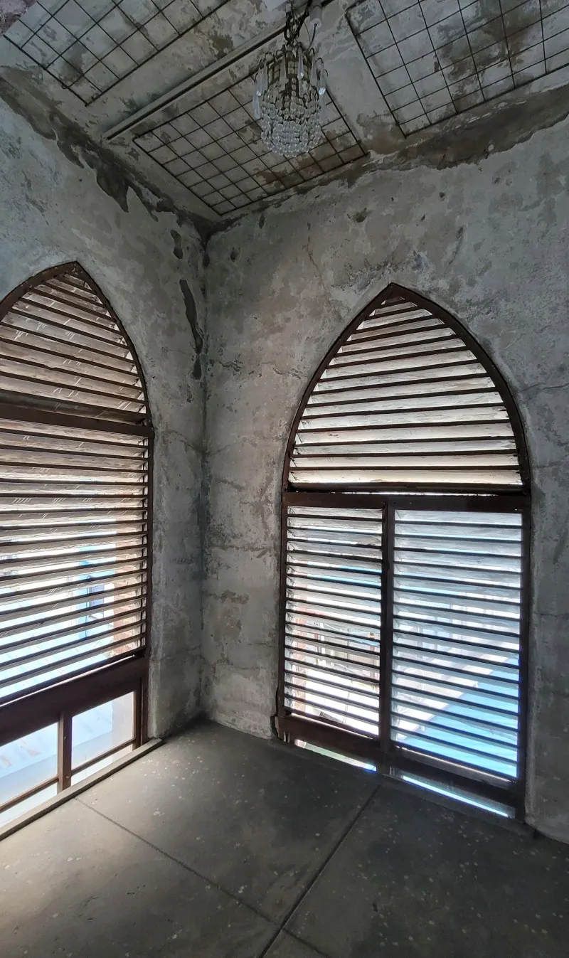 마치 종이 걸려있던 것처럼 보이는 공간인데, 아치형 창문이 낡았지만 매우 레트로적인 감성을 불러일으키는 모습이라서 항상 ‘구석으로부터’에서 전시가 있을 때마다 어떻게 꾸몄을지 기대가 되는 공간이기도 합니다.