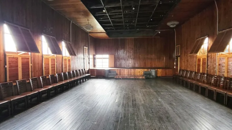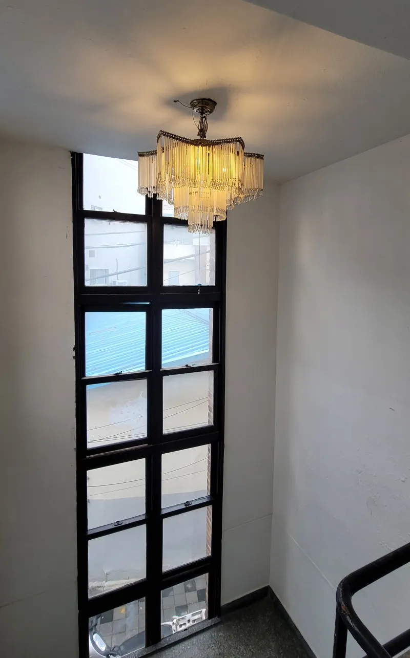 2층으로 올라가면 공연장이 나옵니다. 계단을 오르며 돌아보니 천장에 걸린 샹들리에가 건물 초기의 향수를 느끼게 합니다.