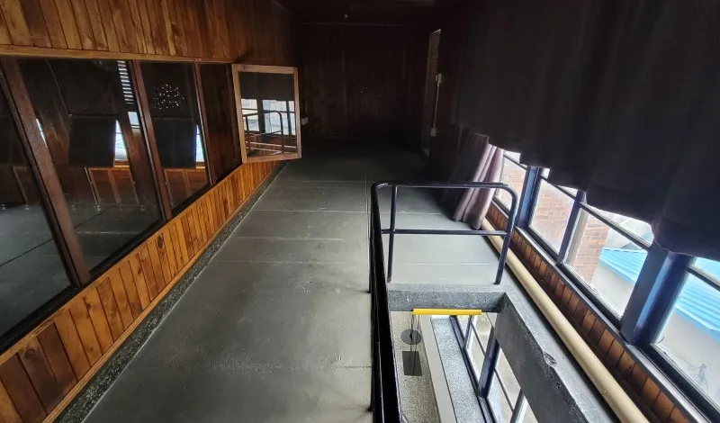 원래는 창이 있었는데, 공연장으로 이용할 때 암막 커튼 대신에 위로 열 수 있는 나무창을 달아놓은 것이 인상적입니다.