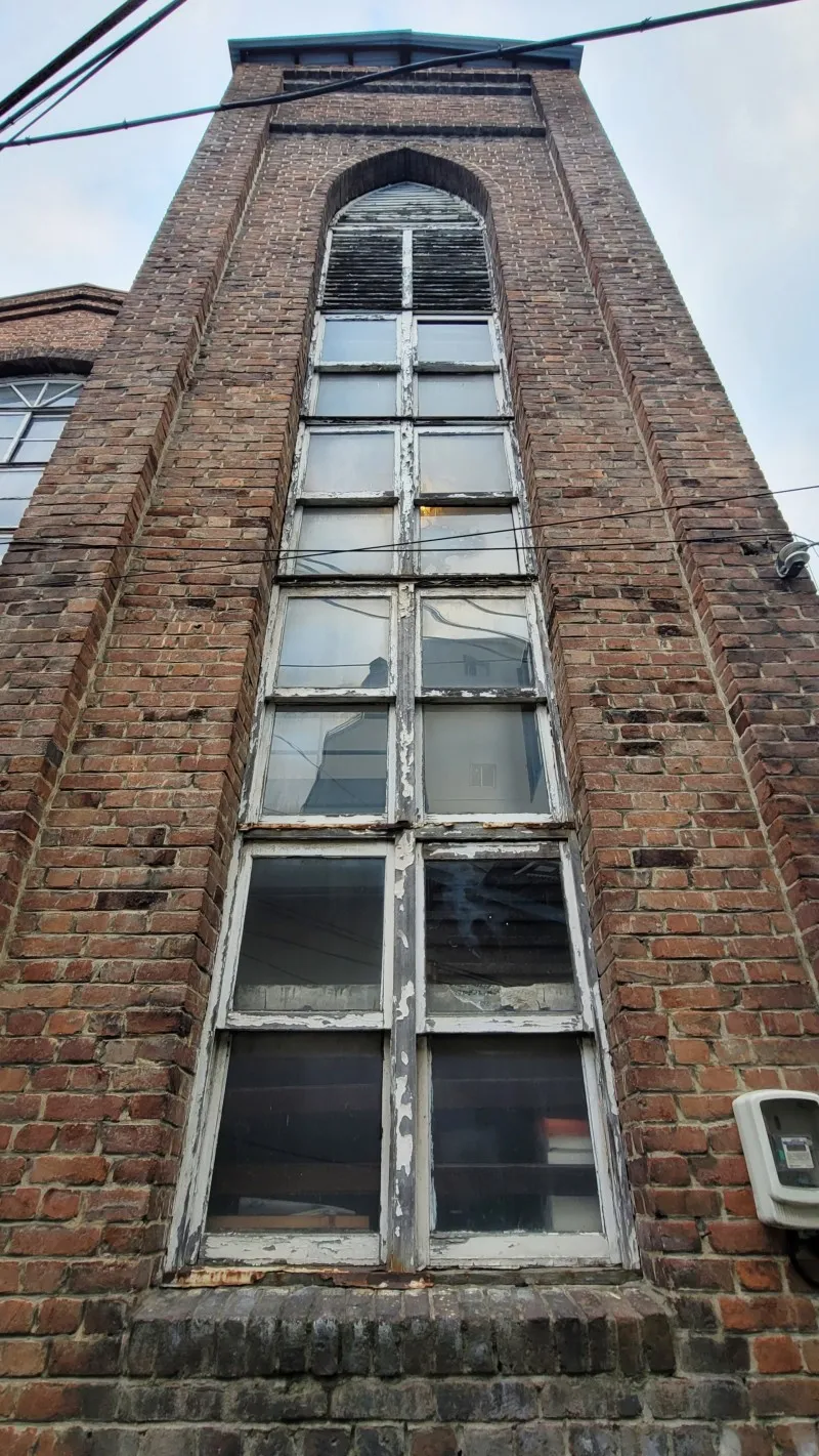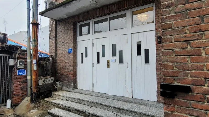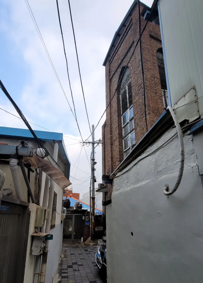 어떻게 이런 작은 골목에 이런 건물을 지었는지 신기한 생각이 드는 벽돌 건물입니다. 한눈에 보아도 수십 년 된 것으로 보이네요.