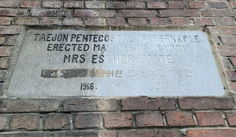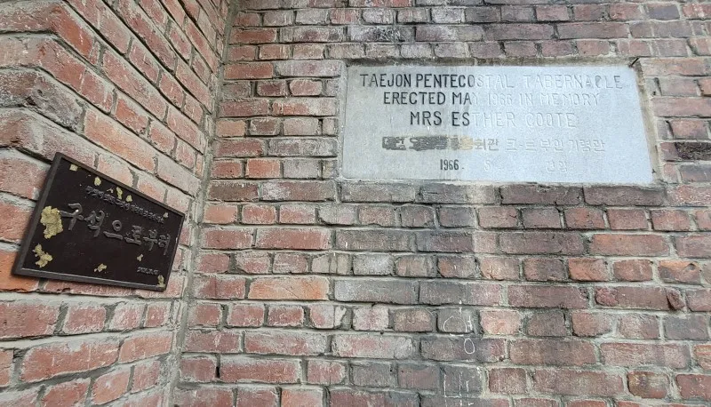 벽돌 건물 벽에 새겨진 건물의 이력을 보면, 이곳은 대전성령강림절교회(또는 오순절교회)의 쿠트 부인 기념관으로 1966년에 세웠다고 합니다.
