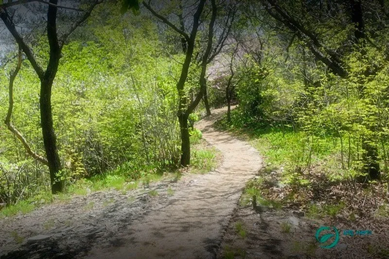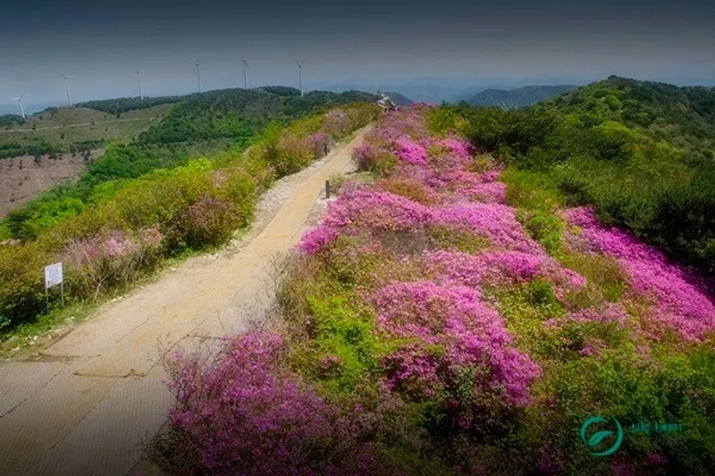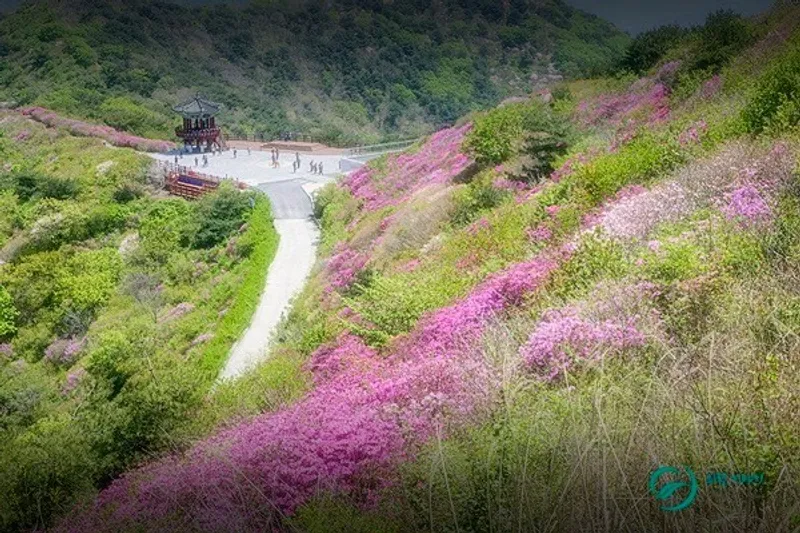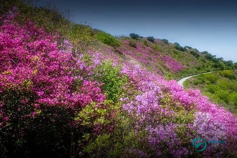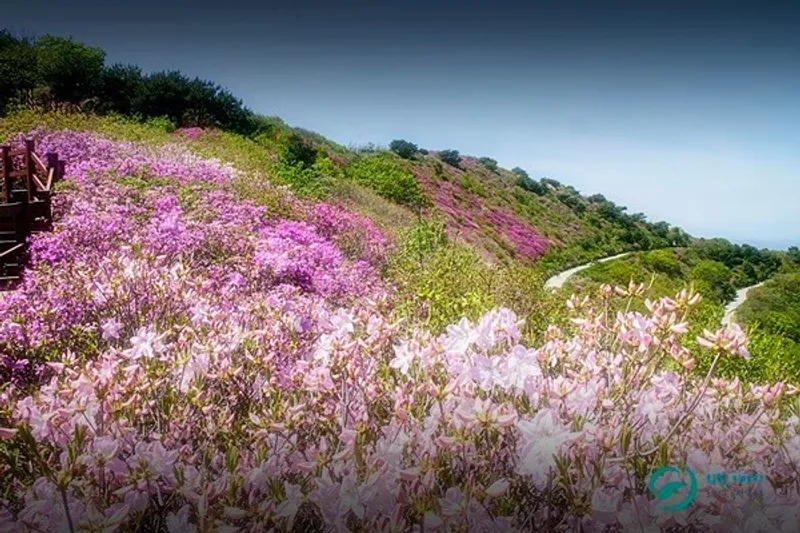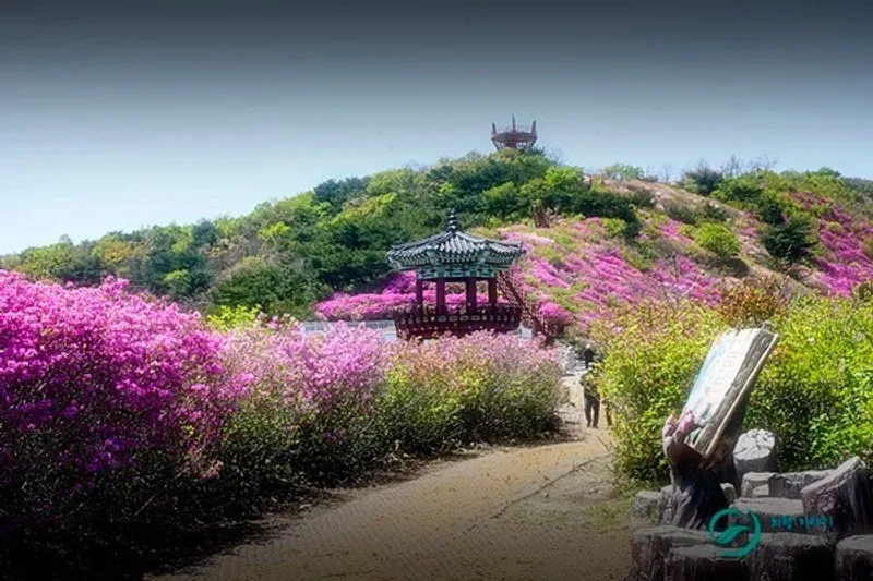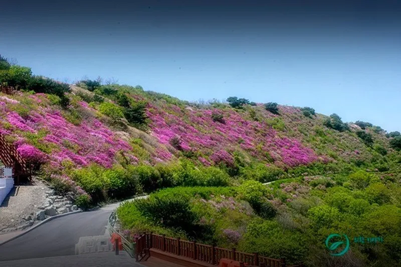팔각정 한우정에서 한우산 등산로를 따라가는 길가의 철쭉이 길 양쪽에 곱게 잘 피었습니다.