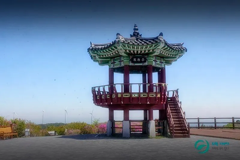 한우산 팔각정 한우정에 도착하였습니다. 산행을 온 사람들이 꽃 구경으로 붐비고 있었으며 한우정에서의 사방 조망이 아주 멋있고 좋았습니다.