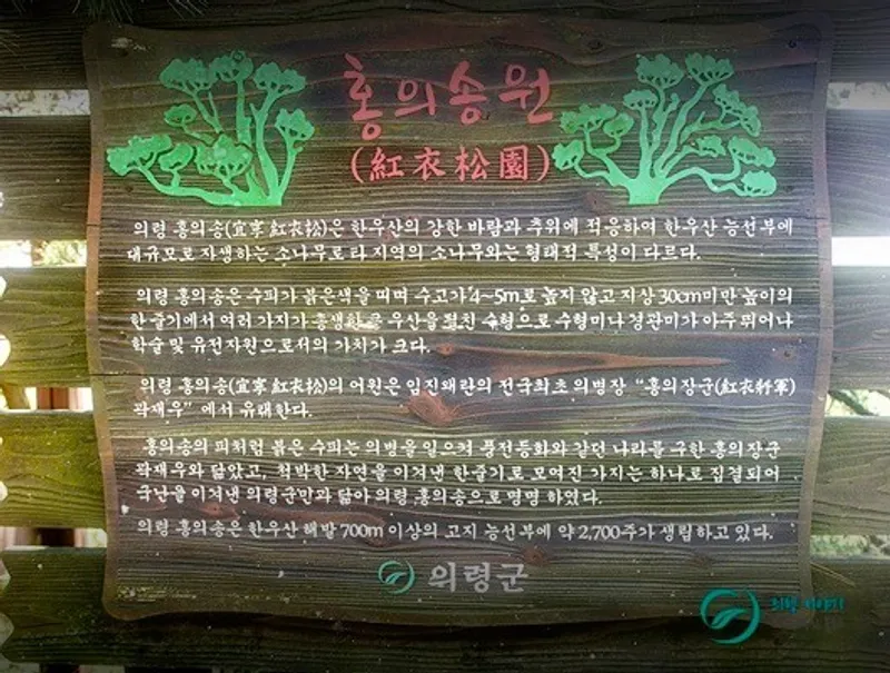 홍의송원 한우산 소나무는 연한 홍색을 띠고 있어 홍의송원이라 이름하였을까요?