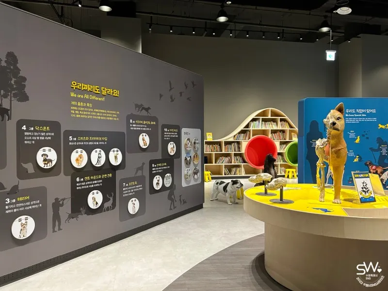 어린이전시실은 영유아부터 저학년에 적합한 체험 위주의 전시인데요, 36개월 미만 영유아를 위한 아기농부관, 미취학 아동을 대상으로 하며 벼농사의 과정을 체험해 보는 1관, 미취학 아동과 저학년을 대상으로 하며 생명 존중과 펫티켓(pet+etiquette)을 배우는 2관으로 구성되어 있습니다.
