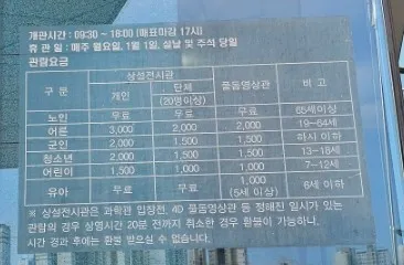 바깥 유리에 입장료가 안내되어 있어요.