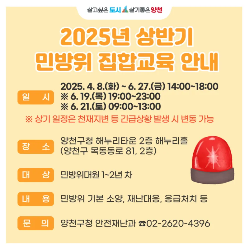 2025년 상반기 양천구 민방위 집합교육 동별 일정(기본교육)