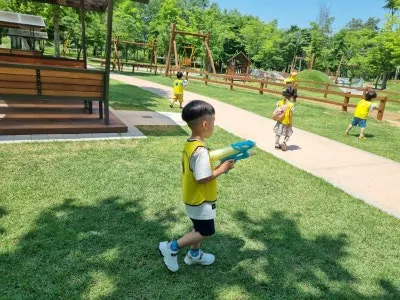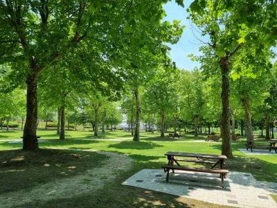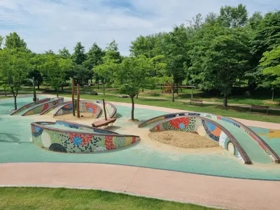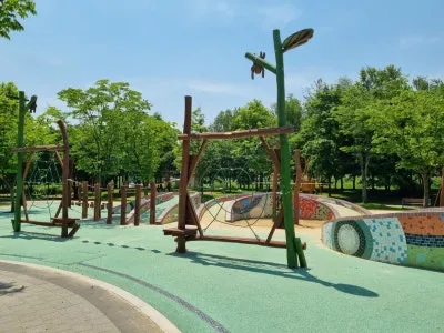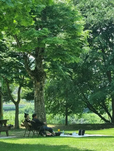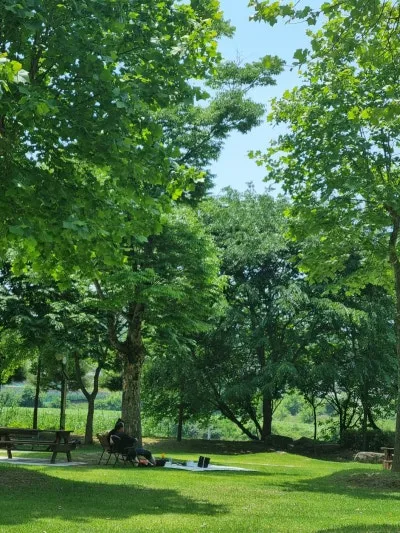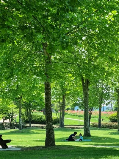 아이누리 놀이터 뒤쪽으로 드넓은 플라타너스 광장이 있다. 플라타너스 광장에는 무료로 사용할 수 있는 나무 테이블이 있어 아무 준비 없이 찾아가도 언제나 편히 앉아 쉴 수 있다. 또한, 관리가 잘 된 폭신한 잔디가 깔려있어 돗자리를 깔고 앉으면 쿠션이 따로 필요 없다. 특히 여름이 오면서 플라타너스가 더욱 풍성해진 잎으로 그늘을 만들어 어느 곳이든 명당자리가 된다. 시원한 플라타너스 그늘에 돗자리를 펴고 앉은 부녀의 모습이 그저 행복해 보인다.