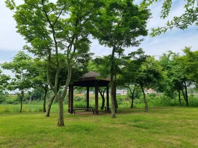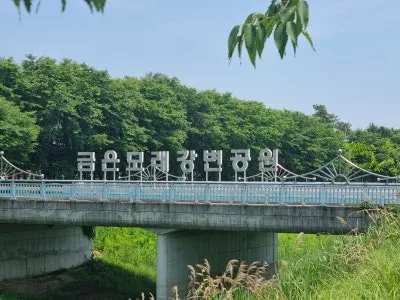 금은모래강변공원 산책로를 따라 걷다 보면 곳곳에 쉼터가 조성되어 있다. 쉼터에는 그늘을 만들어 주는 정자와 나무 의자들이 배치되어 있어 산책하다 잠시 쉬기 좋다. 또 생태연못에 수변관찰데크를 만들어 생태환경을 관찰할 수 있도록 했다. 기존에 있던 미니어처 공원과 갑돌이·갑순이 정원을 없애고 그 공간을 다양한 포토존을 포함한 새로운 테마 공간으로 조성 중이다. 공원 안쪽으로 들어갈수록 새들의 지저귐이 커지고 자연의 향기가 짙어진다.