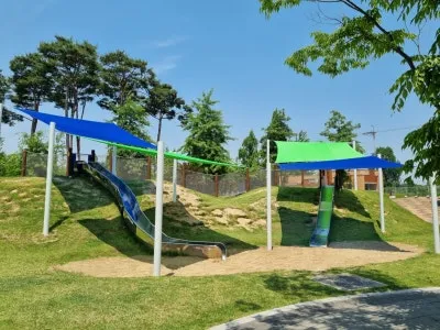 금은모래강변공원은 주차장과 가까이에 아이누리 놀이터가 조성되어 있다. 주말이면 아이들과 피크닉을 나온 가족들을 많이 볼 수 있다. 아이누리 놀이터는 아이들에게 다양한 자극을 줄 수 있는 놀이 기구들로 평일에는 어린이집 친구들의 즐거운 놀이터가 된다. 최근 미끄럼틀에 차광막을 설치해 마찰로 인한 화상을 예방할 수 있도록 했고 아이들에게 유난히 인기가 많은 짚라인을 하나 더 설치해 운영을 앞두고 있다.