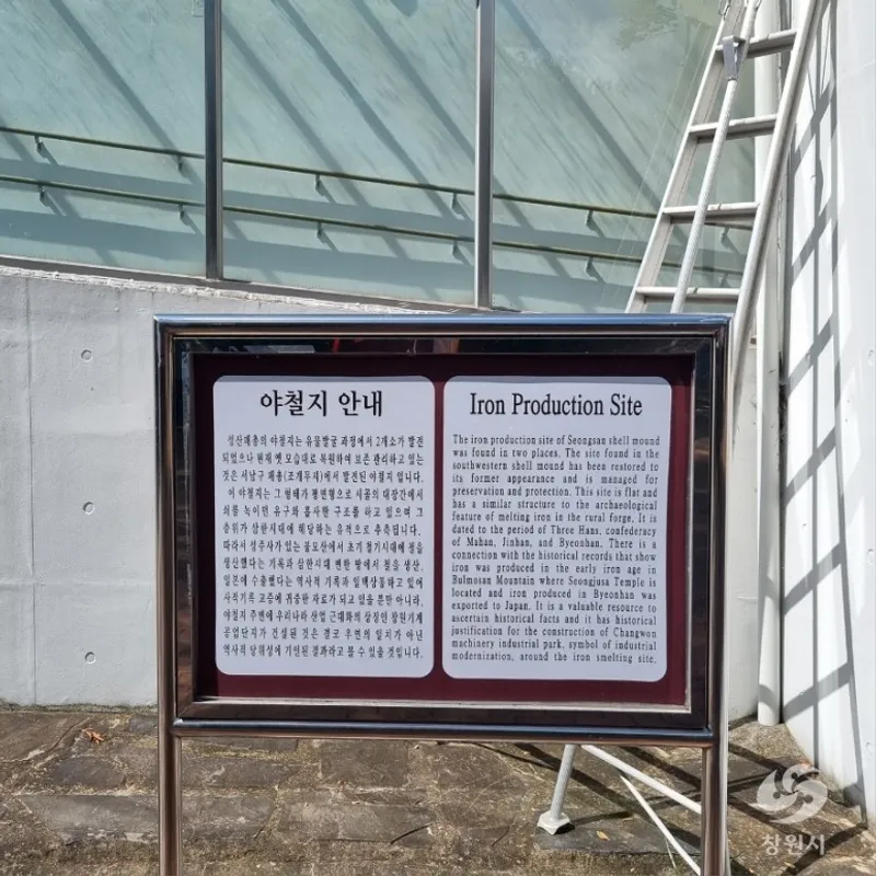 창원 불모산에서 초기 철기시대의 철을 생산했다는 기록과 함께 창원이 대표적인 공업도시임을 나타냅니다.
