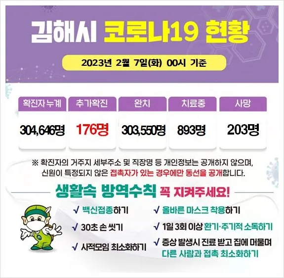 김해시 코로나19 상황 알림(2023. 2. 7. 00:00 기준)