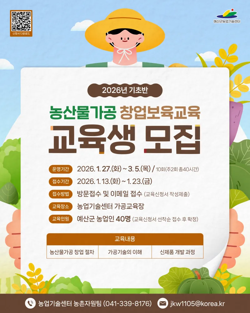 📢2026년 농산물가공 창업보육교육 기초반 교육생 모집