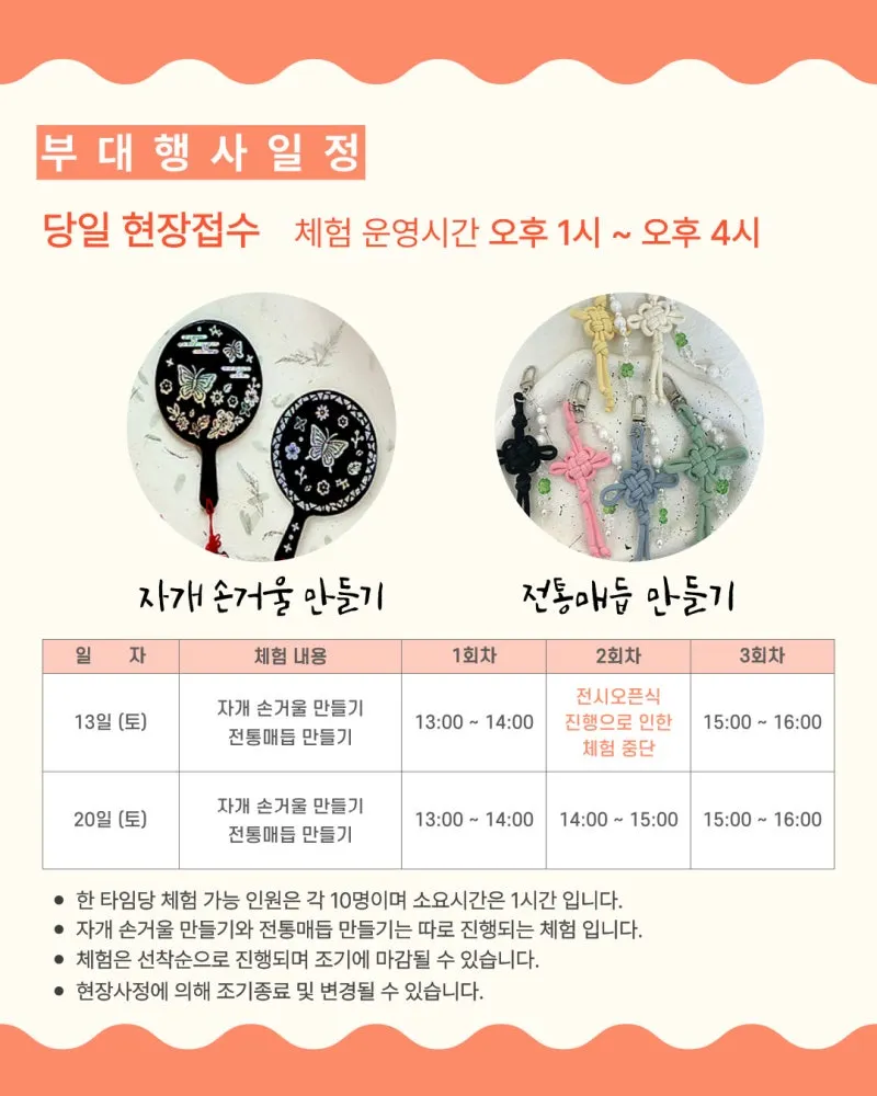 ✅ 부대행사 : 자개 손거울 만들기, 전통 매듭 만들기