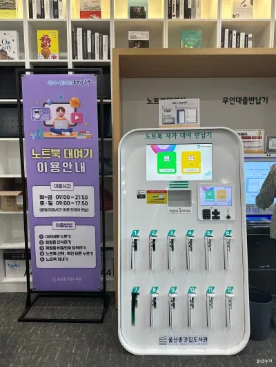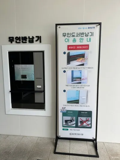 울산 가볼 만한 곳 종갓집도서관 1층 입구에는 스마트도서 예약대출과 무인도서 반납기로 도서관 운영시간에 방문하기 힘든 분들도 대출 및 반납을 할 수 있어서 언제든 편하게 이용할 수 있답니다.