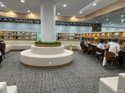 의자도 딱딱하고 불편한 의자가 아닌 푹신한 소파와 누워서 책을 읽을 수 있는 빈백 등 다양한 타입으로 있어서 명당자리를 차지하기 위해 도서관 오픈런도 계속되고 있어요.