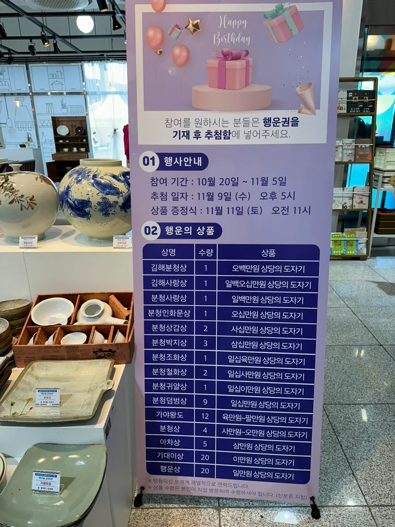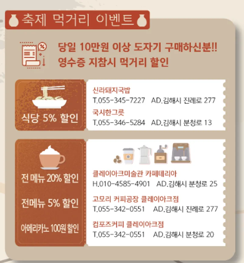 당일 10만원 이상 도자기 구매 시 영수증 지참하면 먹거리도 할인됩니다.