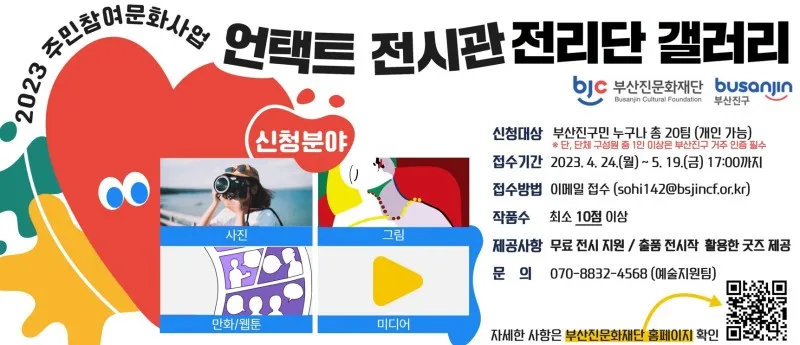 여러분의 경험과 상상을 표현한 예술작품을 언제 어디서나 관람할 수 있도록 『언택트 전시관 전리단 갤러리』에 참여할 주민을 모집하오니 많은 참여 부탁드립니다.