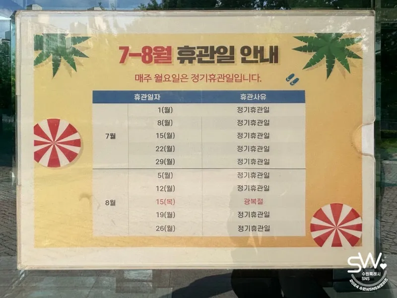 공휴일 및 매주 월요일 휴관이니 일정을 참고해주시고 방문하시면 좋을 것 같습니다.
