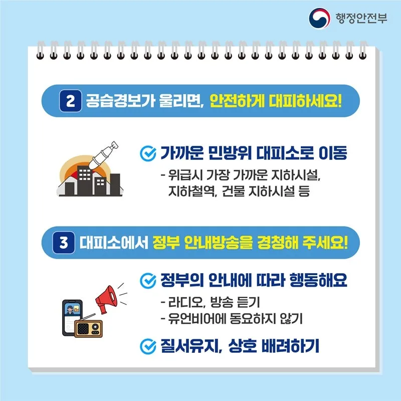 민방위 훈련에 적극적으로 협조 부탁드립니다.