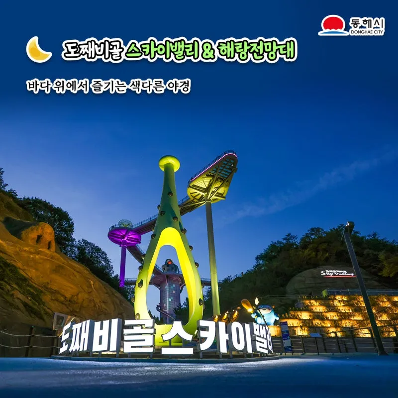 #동해야경명소 #야경인생샷 #전천뜬다리정원마루 #추암의여명빛테마파크 #도째비골스카이밸리 #해랑전망대 #한섬해변 #논골담길 #묵호등대 #동해시