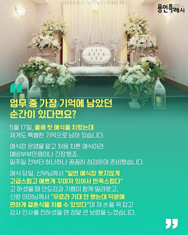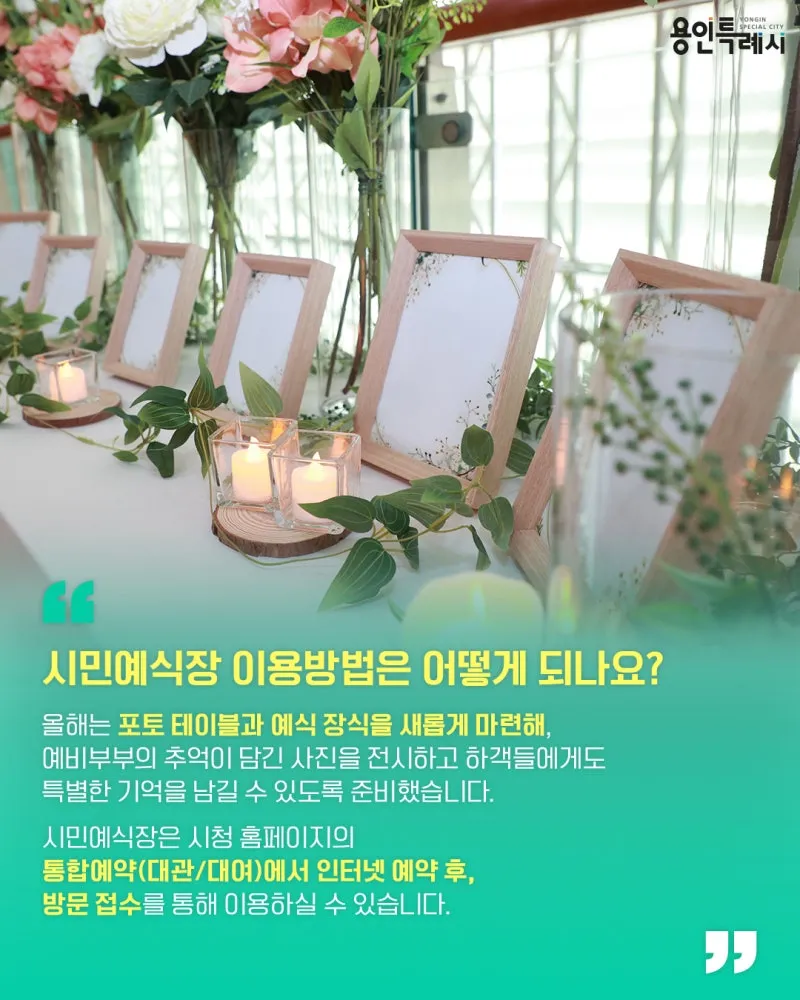 용인시 시민예식장의 운영 전반을 담당하고 있습니다.
