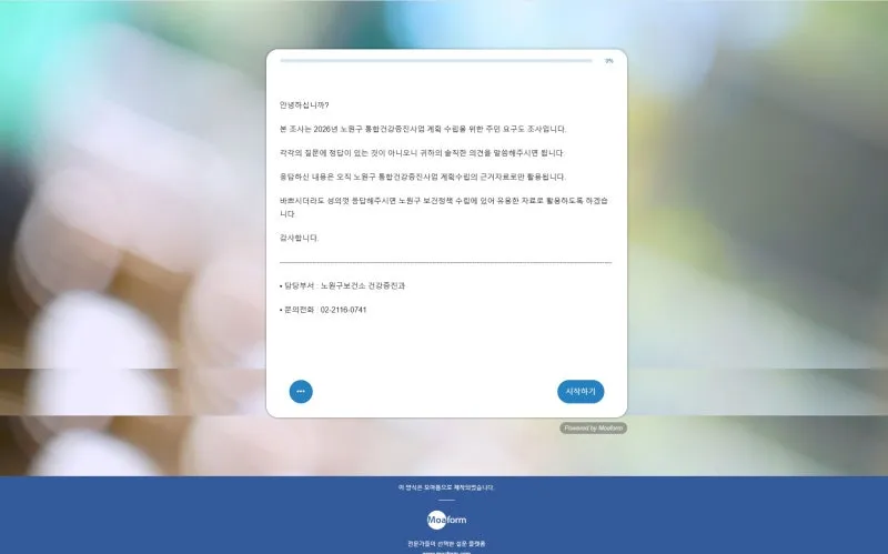 건강도시 노원은 2026년 한 해 동안 노원구 지역의 통합건강증진사업 계획 수립을 위한 건강 요구도 조사를 주민 대상으로 하고 있습니다.