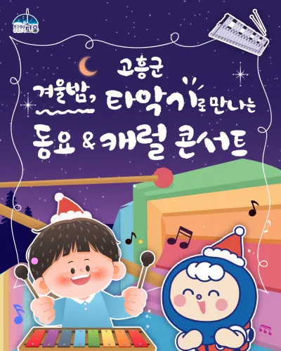 이번 겨울, 고흥군립도서관에서 가족 모두가 함께 즐길 수 있는 동요·캐럴 타악기 콘서트가 열립니다.