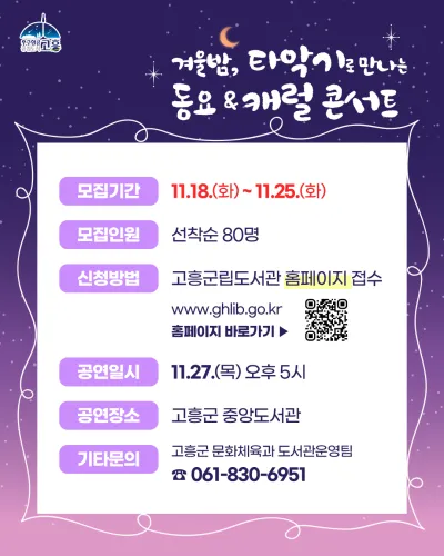 고흥군립도서관에서 준비한 ‘동요·캐럴 콘서트’를 절대 놓치지 마세요!✨