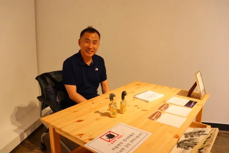 옥천골 미술관에서 작품전시를 할 수 있어 너무 행복하다는 작가님은 미술관에 놓인 작업실 의자에 앉아 포즈를 취해주셨는데요, 미술관을 찾아온 모든 분에게 작품의 혼이 담긴 금의 기운을 선사하고 싶다고 이야기합니다. 옥천골 미술관 관람 시간은 오전 10시~오후 6시, 매주 월요일은 휴관일이니 기간 내 방문해 특별한 작품도 만나보시기 바랍니다.
