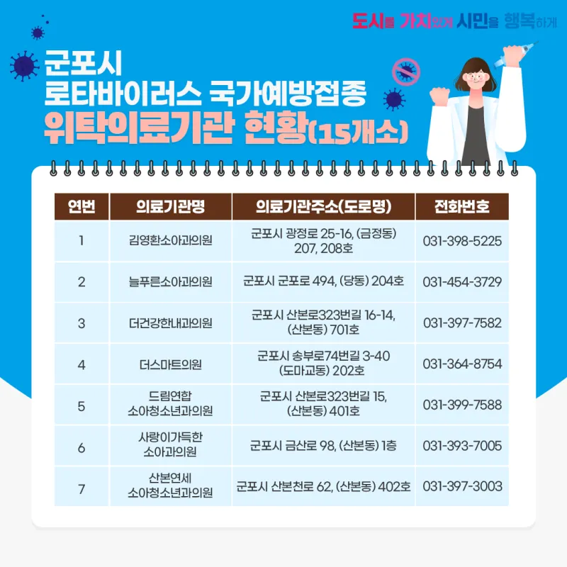 전국 로타바이러스 예방접종 위탁의료기관(군포시 15개소 및 보건소)