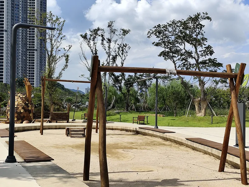 미끄럼틀과 그네 같은 놀이 기구들이 있어 아이들이 신나게 뛰어노는 모습이 눈에 들어왔습니다.
