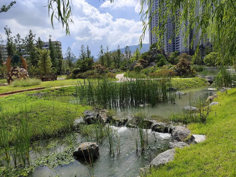 공원은 생각보다 훨씬 넓어서 아이들이 마음껏 뛰어놀기에 더없이 좋은 공간이었습니다. 탁 트인 잔디밭에서 아이들이 웃으며 달리는 모습이 보기만 해도 흐뭇했습니다. 곳곳에 심어진 다양한 식물과 나무들이 푸르름을 가득 채워 주어 걷는 내내 눈과 마음이 시원해졌습니다.