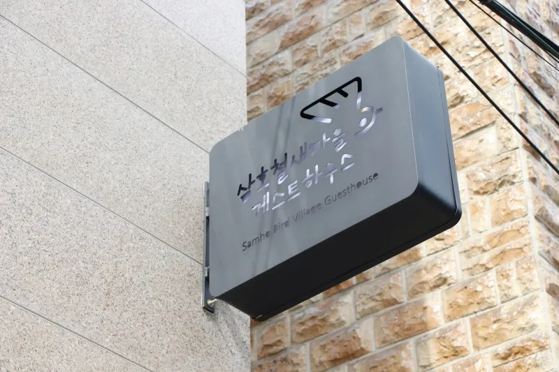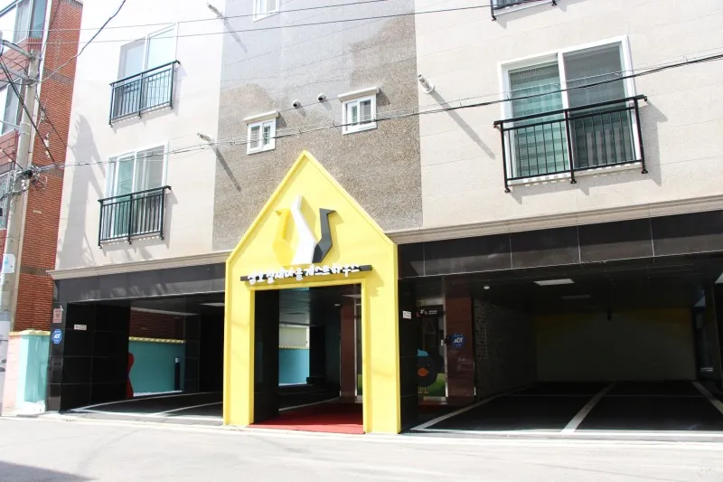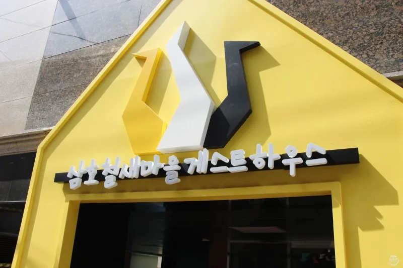 1층에서 5층 옥상까지 건물 전체를 사용하는 '삼호 철새마을 게스트하우스'는 입구의 노란색 표시가 멀리서도 눈에 들어옵니다.