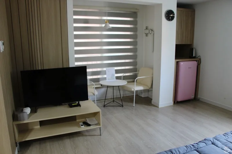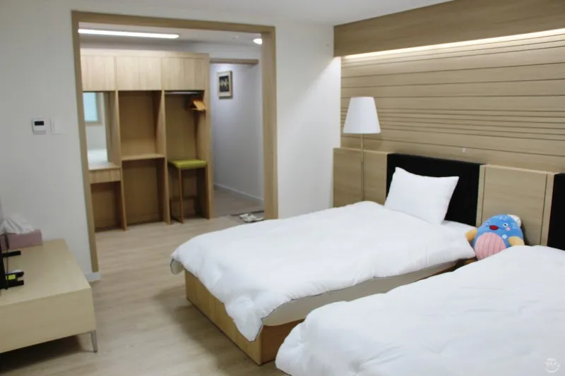 냉장고를 비롯한 티브이, 전등 등은 어느 객실이나 거의 같은 구성이고, 1인 추가 시 1만 원의 추가금이 생길 수 있다고 하니 참고하시길 바랍니다.