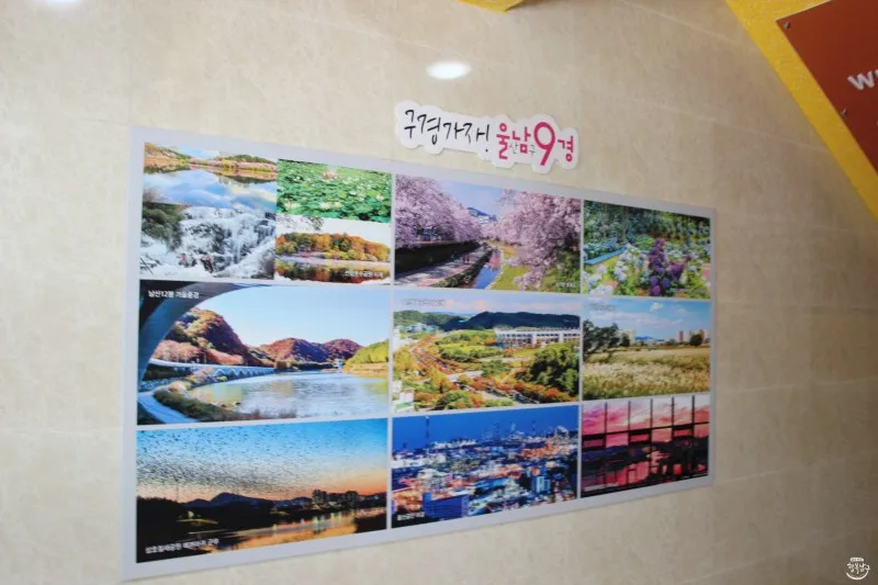 철새마을 캐릭터가 보이는 문을 지나면 울산 9경을 보여주며 공익적 성격을 보여주고 있습니다.