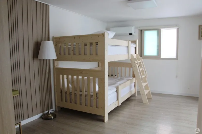 203호는 2층 침대로 구성되어 있습니다. 모든 객실 중에 2층 침대가 있는 곳은 이곳뿐이라니 특별하게 느껴집니다.