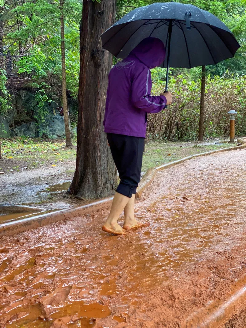 걸어보니 촉촉한 황토의 감촉이 발끝으로 느껴져서