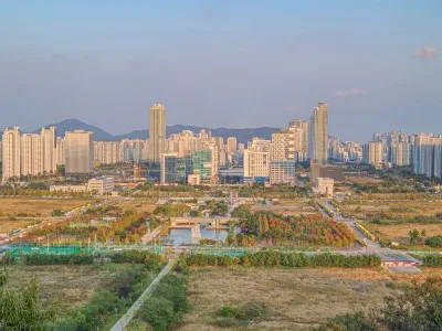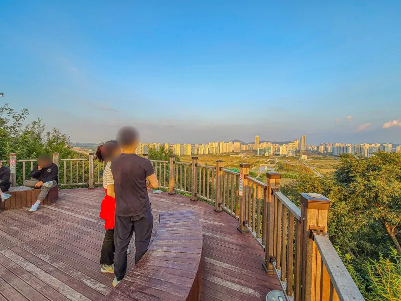 노을공원 전망대에 도착한 모습입니다. 높은 전망 데크가 마련되어 있어서 전망 데크에서 청라 도심 주변을 시원하게 내려다볼 수 있습니다.