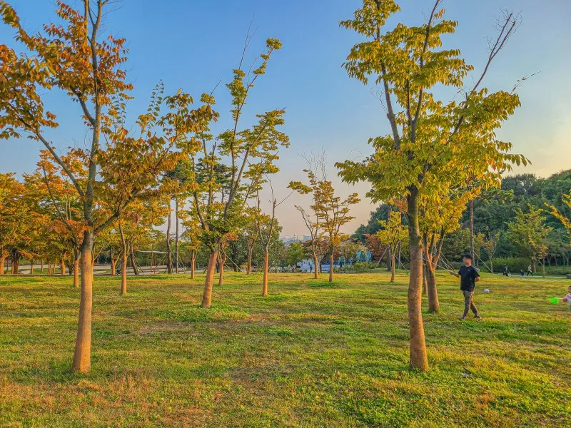 저는 노을공원의 이름에 맞게 해질 때 즈음 방문했는데, 주변에 초록 초록한 나무랑 풀, 잔디들이 많아서 황금빛 풍경이 정말 진국이었습니다. 가을 하늘이 유난히 청명하고 쾌청해서 특유의 그 아련한 분위기가 있는데, 이날 그 아련한 가을 분위기를 정말 잘 느낄 수 있는 하루였습니다.