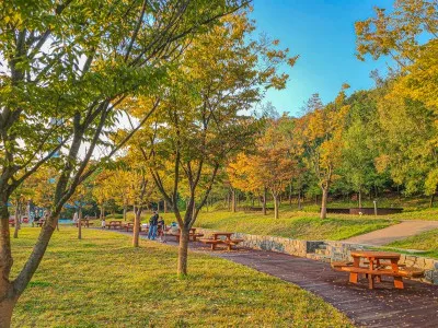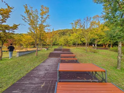 공원 주변에 앉아서 쉴 수 있는 벤치와 테이블이 많이 비치되어 있어서 휴식 취하기에도 정말 좋았습니다. 파라솔이나 그늘막은 따로 없었지만, 이맘때 가을 늦은 오후 시간대에 방문하면 햇볕이 그리 강하지 않고 선선한 바람이 불어서 없어도 무방한 것 같습니다.