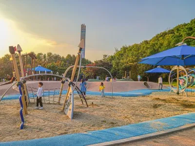 노을공원이 아이와 함께 방문하기 좋은 이유는, 넓은 잔디 공간과 함께 아이들 놀기 좋은 어린이 놀이터가 크게 조성되어 있기 때문입니다. 바닥이 푹신한 소재로 되어 있는 곳이 있고, 모래가 있는 곳도 있어서 아이들이 다양하게 놀기 좋아 보였습니다. 어린아이들은 사실 어디를 가든 놀이터만 있으면 다 좋아하는 것 같아요.