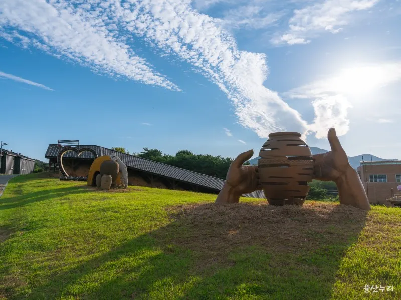 외고산 옹기마을 한쪽에는 옹기문화공원이 있으며 이곳에는 옹기마을만의 분위기가 나는 조형물, 놀이터가 있는 곳이에요.
