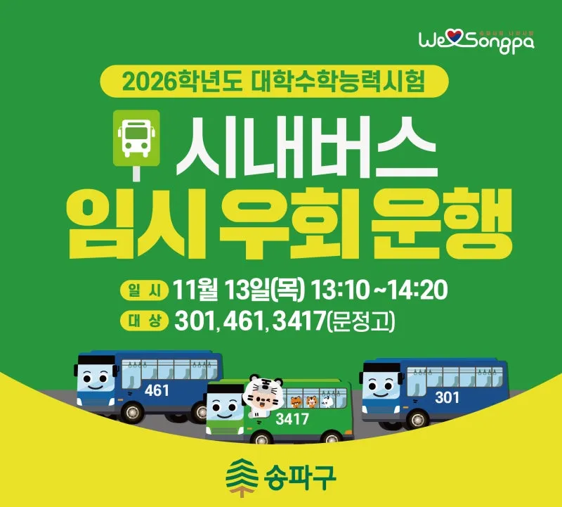 11/13(목) 수능일 송파구 시내버스 임시우회 안내