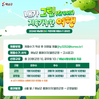 [여행 공모전] 해남형ESG 착한여행 체험수기 공모